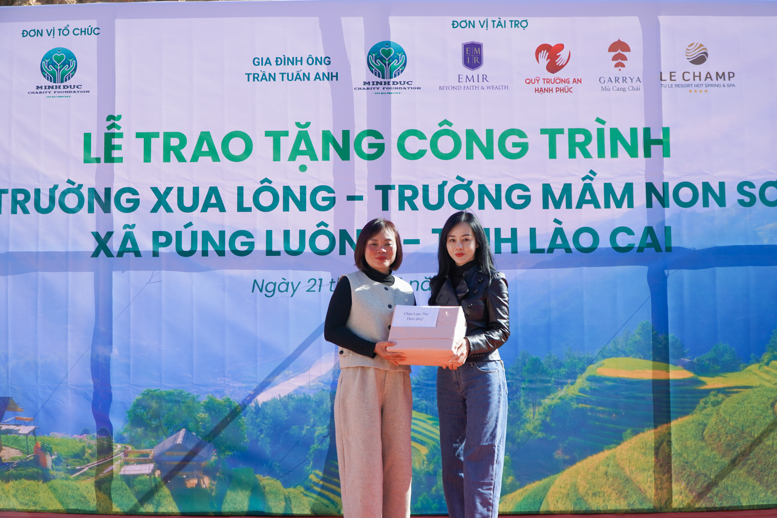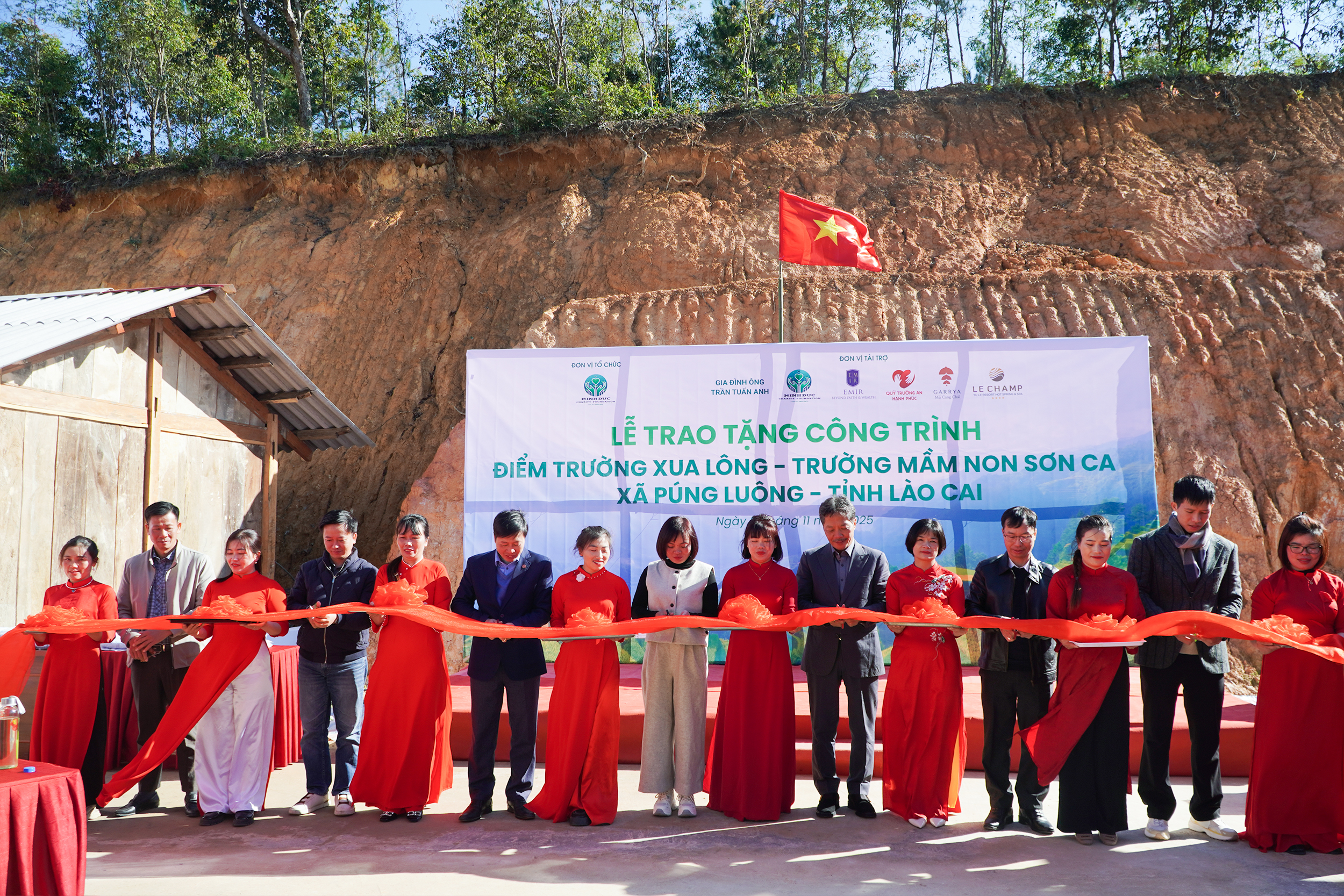Ngày 21/11, đoàn đã tới xã Púng Luông, tỉnh Lào Cai tham dự Lễ bàn giao công trình điểm trường Xua Lông – đánh dấu bước hoàn thiện của dự án đầy ý nghĩa này. Chuyến đi không chỉ là dịp trao gửi món quà mà còn chứa đựng thật nhiều yêu thương với những khoảnh khắc chạm đến trái tim của tất cả người tham dự.