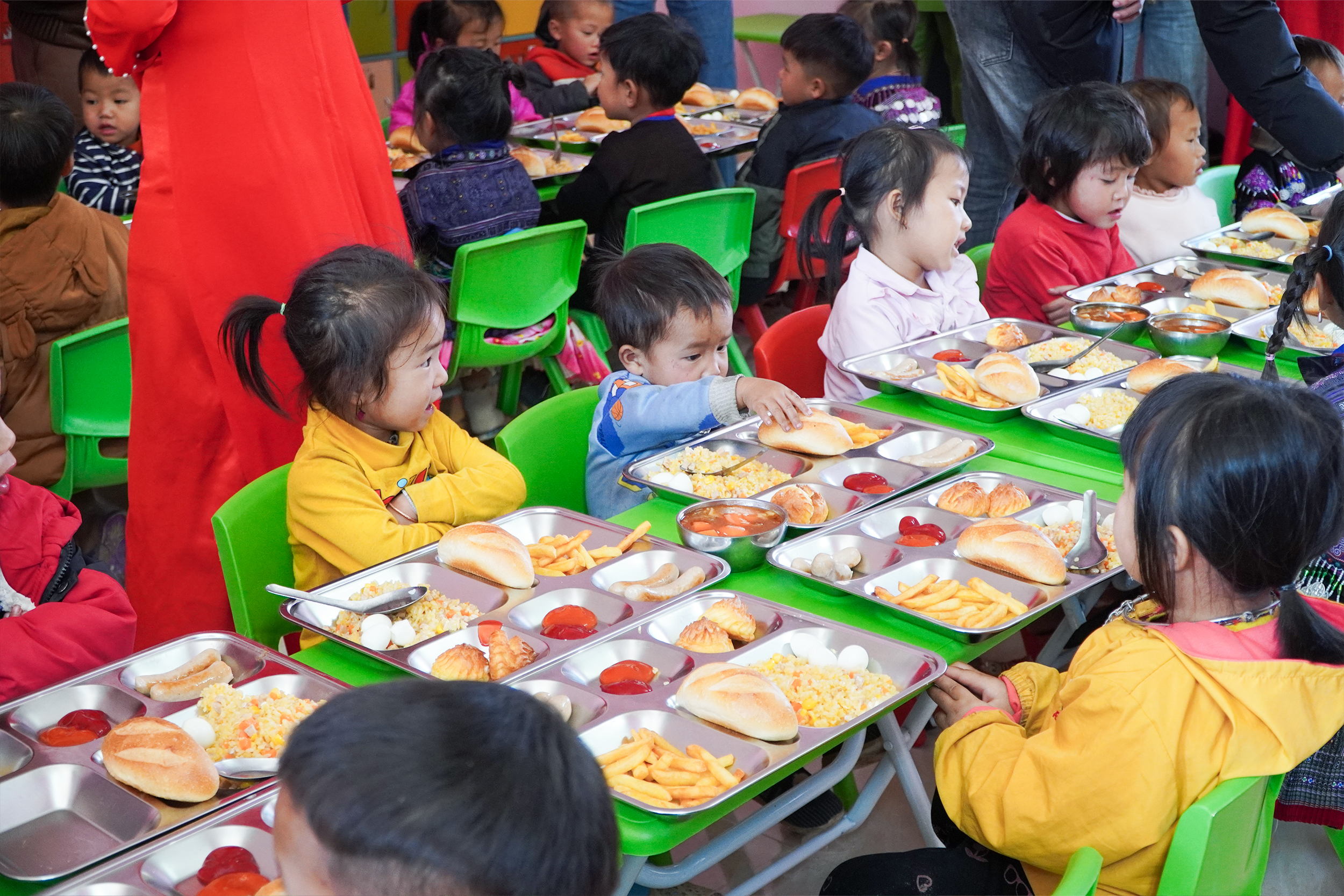 Nhìn các em quây quần bên những bàn ăn nhỏ, ánh mắt hồn nhiên và háo hức thưởng thức các món ăn, cả không gian lạnh lẽo vùng cao bỗng trở nên ấm áp và bình yên. Những hình ảnh giản dị ấy đủ để khiến bất kỳ ai cảm thấy ấm lòng và thấy rằng hành trình này thật sự ý nghĩa.